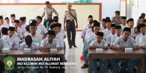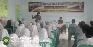 Sosialisasi kepada siswa-siswi (santri) Madrasah Aliyah Mu’allimin Mu’allimat Rembang disambut dengan hangat oleh semua guru. Adapun upaya yang dilakukan pihak kepolisian tersebut supaya terciptanya situasi Keamanan dan Ketertiban Masyarakat (Kamtibmas) yang selalu kondusif dan harmonis.